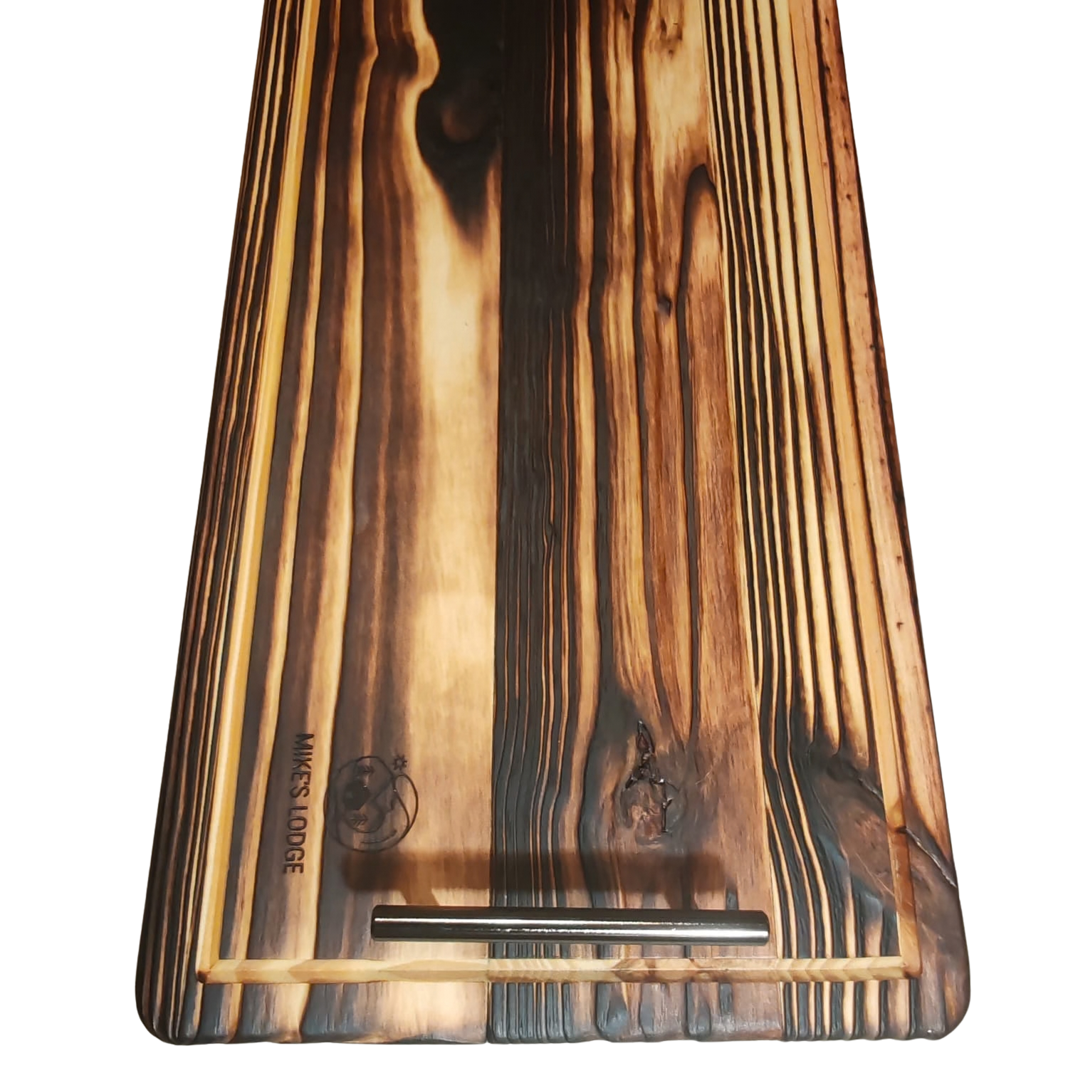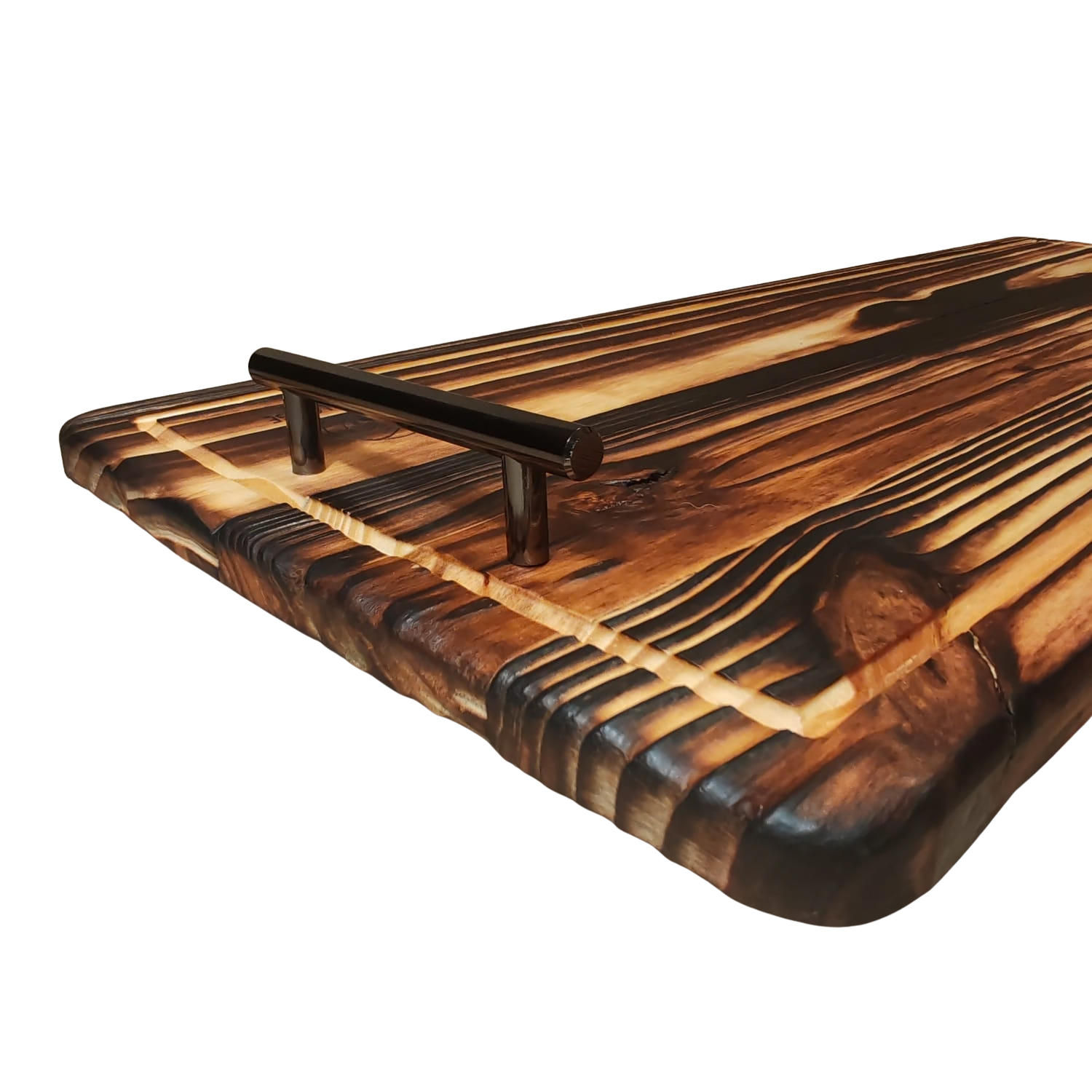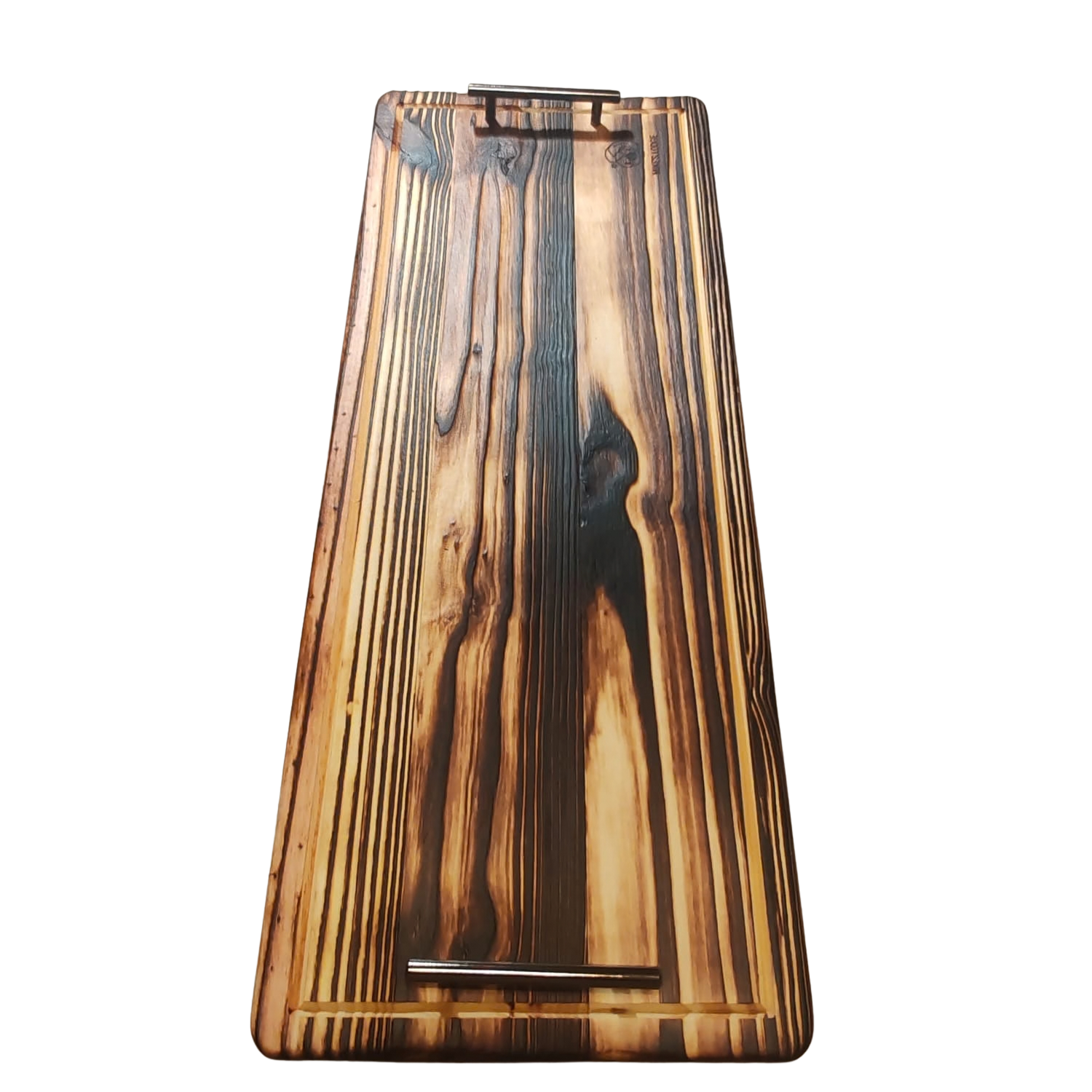 Add a striking natural accent to your table with our handcrafted Pine Finish Shou Sugi Ban Runner Board. Inspired by the traditional Japanese Shou Sugi Ban wood-burning technique, this board features a beautifully textured surface that enhances the natural grain of pine while creating a bold, modern rustic look. The rich charred finish highlights the unique character of the wood, making each board a one-of-a-kind serving piece.